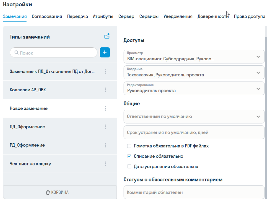 После чего, зайдите в другой проект (в примере: из Проекта 0 в Проект 1), создайте замечание с тем же названием из предыдущего проекта, и нажмите “Обновить настройки из другого проекта”.