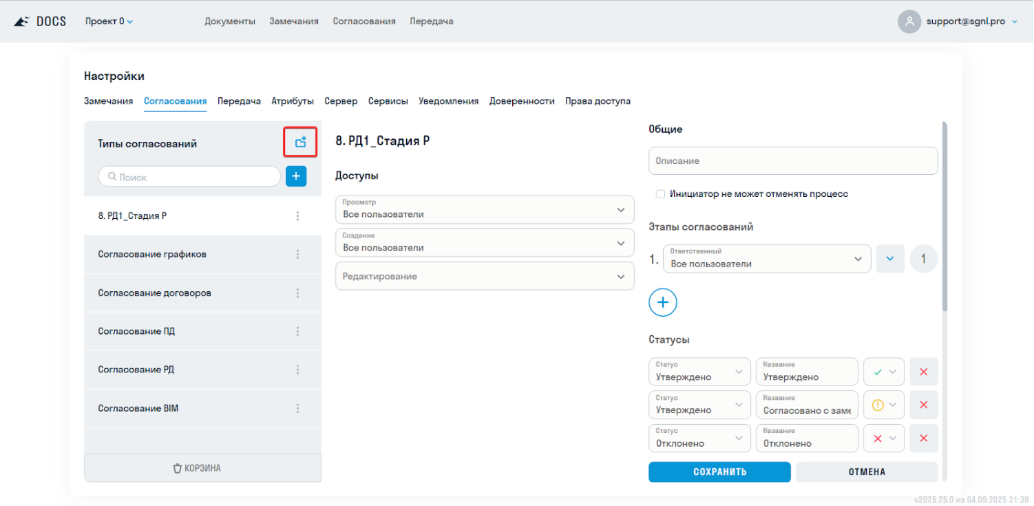 После чего, согласование полностью примет параметры своего шаблона с другого проекта.