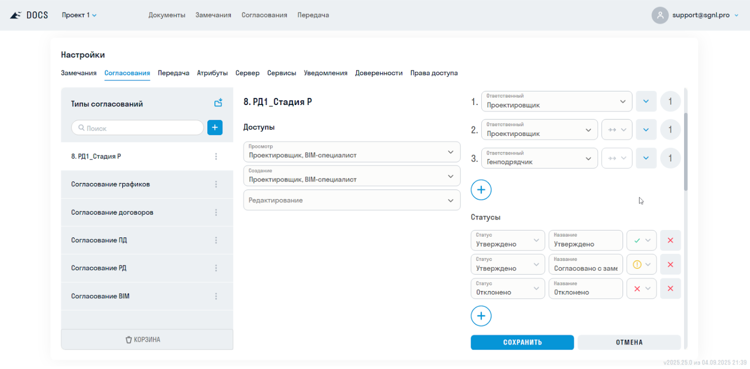 Точно также функция работает на Согласование. Создайте согласование, настройте все параметры и перейдите в другой проект.